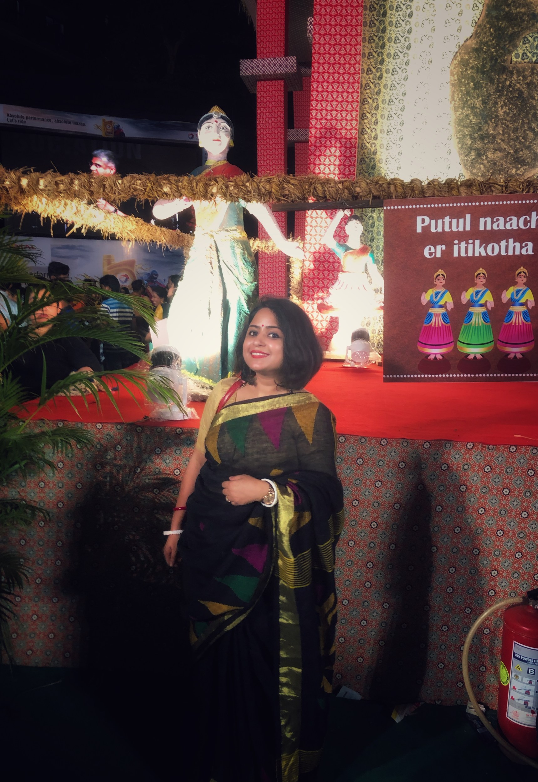 It’s easy to confuse Pujo celebrations with big, glamorous parties. 😀 Well, it’s a celebration because Maa Durga visits her home along with her kids during this time (that’s what is believed). So all earthly beings, who are supposed to be Maa Durga’s relatives, celebrate her arrival.